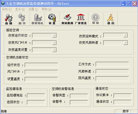 DJSI-1大金空調(diào)機監(jiān)控器是為實現(xiàn)大金空調(diào)機與計算機監(jiān)控功能而設(shè)計的專門化部件,該監(jiān)控器向用戶提供一個計算機監(jiān)控接口(RS232/RS485),通過該監(jiān)控器用戶可獲取空調(diào)機的數(shù)據(jù)控制空調(diào)機。通過建設(shè)空調(diào)機集中監(jiān)控系統(tǒng),用戶可對空調(diào)機進行四遙(遙信、遙測、遙控、遙調(diào)),實現(xiàn)遠程維護。本軟件的主要功能和主界面如下。