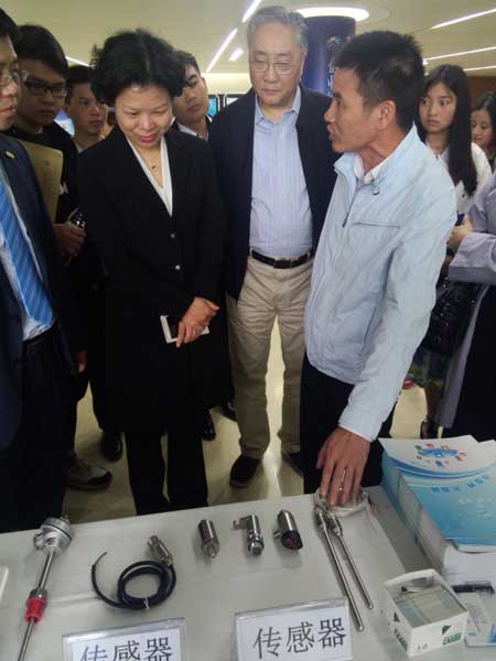 5月10日,長沙市委常委、副市長張迎春帶隊,市經信委主任鄧自力,高新區黨工委委員、管委會副主任莫一平,市科技局黨組成員、總工程師盛湘饒,市知識產權局副局長張立,市經信委通信局局長肖逸等領導深入工業園區考察。張迎春副市長強調,要處理好當下與長遠、企業與產業、地方與央企三種關系,加強政策引導、企業服務和產業培育。張副市長在湖南澤天傳感科技有限公司展位前詳細詢問了澤天產品的相關情況,張副市長對澤天產品給予了高度評價,同時,鼓勵企業加強自主創新,樹立品牌意識服務國家經濟建設。